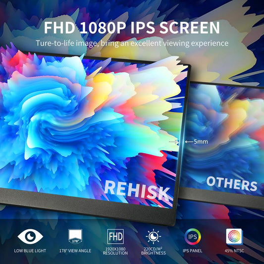 Portable Gaming Monitor 15.6" USB-C HDMI Computer Display W/Smart Cover and Dual Speakers, Travel Monitors for Laptop Mac PC Phone PS4/5 Xbox Switch