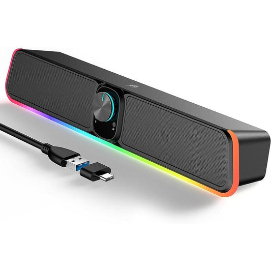Computer Speakers - Wired USB Computer Sound Bar with RGB & Volume Knob, Hifi Stereo Portable Gaming Sound Bar Speaker for Desktop , PC, Laptop, Tablets, Air/Pro