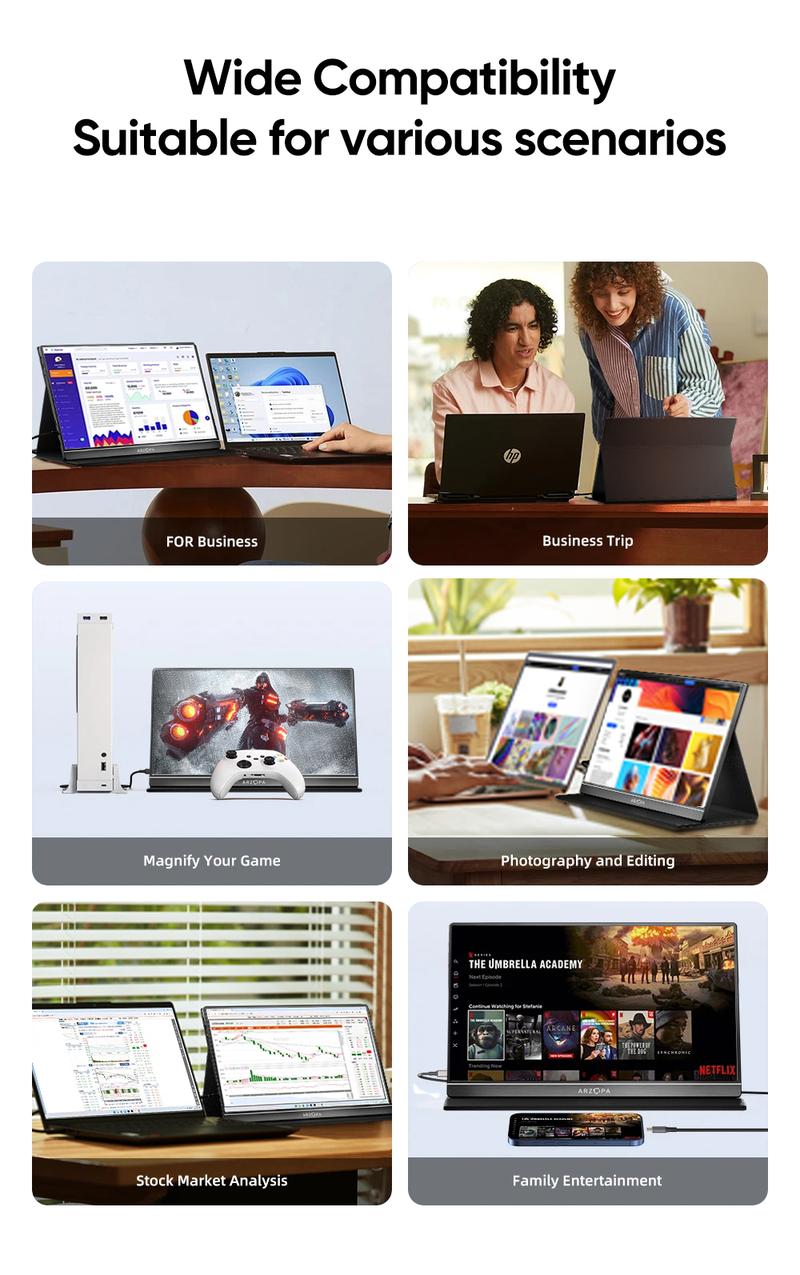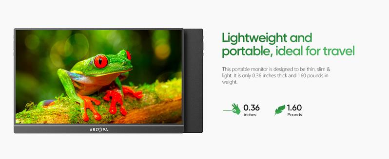 ARZOPA Portable Gaming Monitor 16.1" 100%Srgb Full HD Portable Monitor IPS Office Computer External Screen USB C HDMI Display for PC MAC Laptop Phone Xbox PS5 Switch with Adjustable Built-In Kickstand Travel Monitor Gamingonthego
