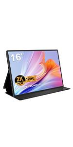 AYY 2K Portable Gaming Monitor 16'' 120Hz 2560X1600 QHD Travel Laptop IPS Computer External Second Screen USB C HDMI Monitor W/Smart Cover for PC MAC Xbox PS5/4