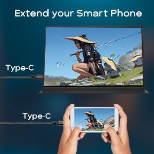 AYY 2K portable second monitor is compatible with USB Type-C mobile phones, it needs just one USB-C cable for transferring video signal and power, lets you view and control your phone by using the 16 inch larger screen.