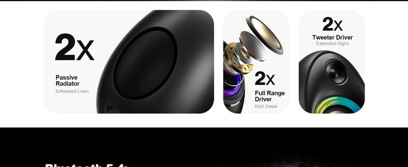- High-Fidelity Stereo: Bluedee speakers for pc feature 2 tweeters, 2 full-range drivers, and 2 passive radiators, producing premium highs and powerful bass. With a 20W power output, they produce crystal-clear audio