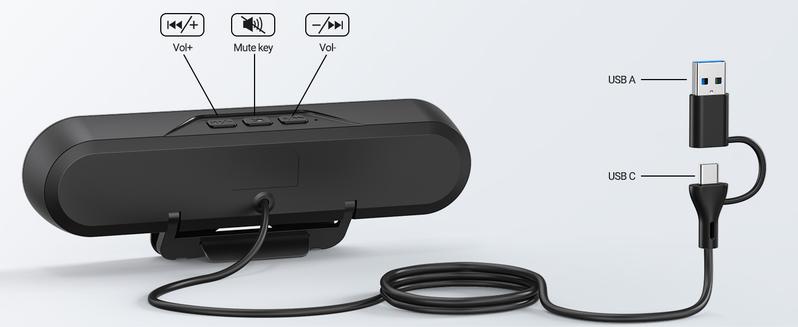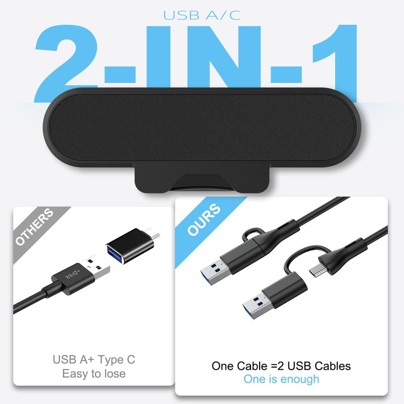 - 【Stereo USB Powered Computer Speaker】: The single USB cable connects to PC or Mac to provide audio and power to the speaker. Plug and play, No need for 3.5mm AUX cables, No additional software to install and No batteries required. This greatly helps avoid messy cables and provides a higher quality audio experience. (Includes a USB-A to USB-C converter)