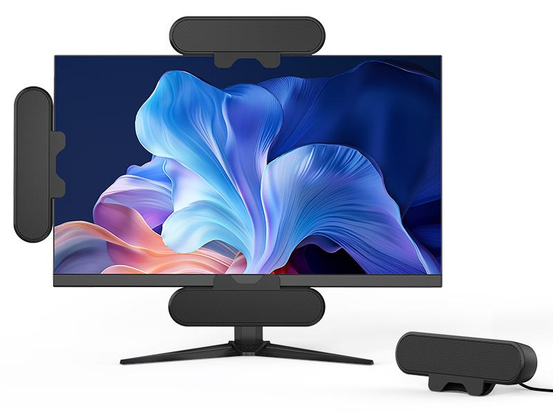 - 【Easy Clip-on Monitors】: We designed a spring clip on the bottom of the speaker that makes it easy to clip the speaker to the top, sides and bottom of your monitor. Easily clamps to most monitors that are 1-inch thick or less to be out of the way and eliminate desktop clutter. The speaker can also stand alone on the desktop. (The silicone pads on the clip protect the monitor well)