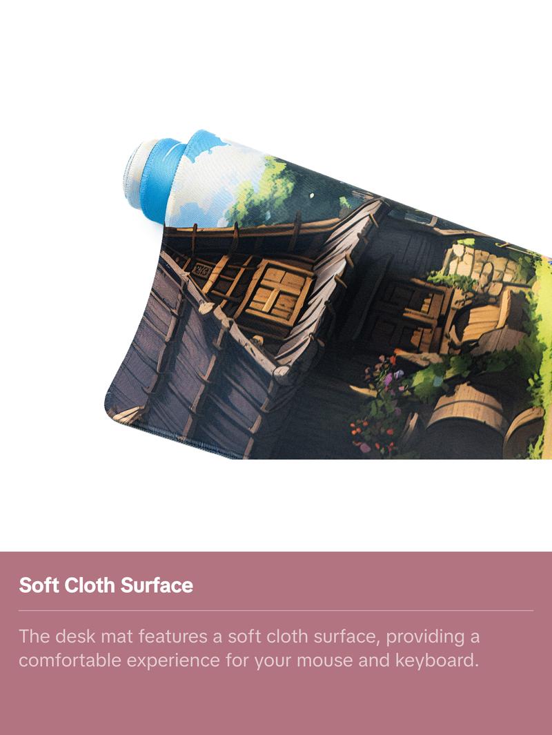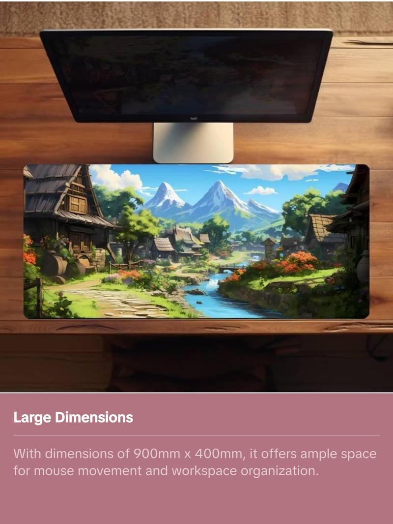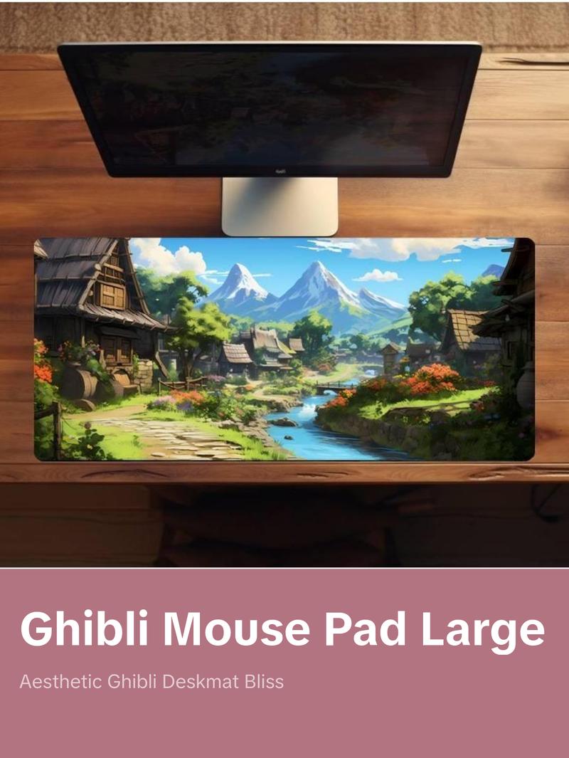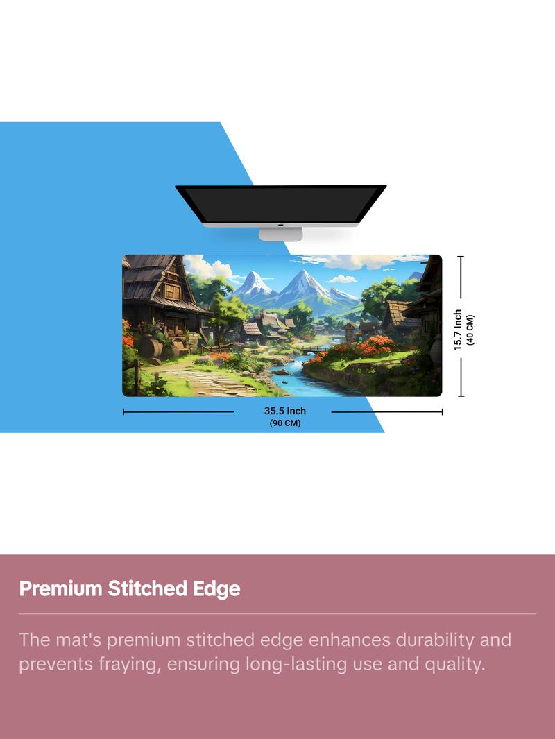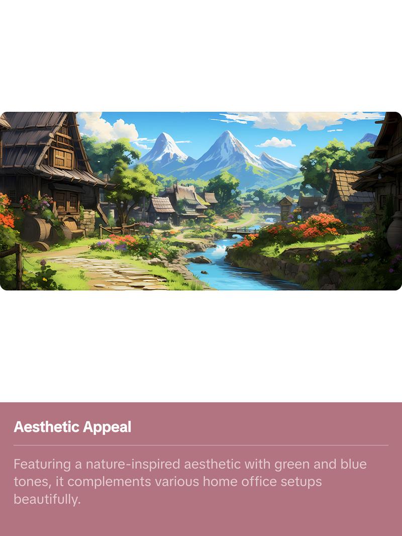 MOUNTAIN VILLAGE - GHIBLI STYLE DESKMAT - - Aesthetic Nature Mousepad for Pc Gaming and Desk Setup - Home Office Accessories - Green and Blue Nautrals