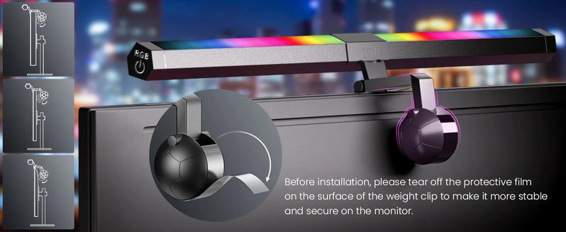 Quntis Computer Monitor Light RGB PRO Backlight Light Bar Gaming Office Desk Screenlinear Lamp, Led Bar MC211 (19.7Inch) Adjustable Brightness Dimmable Lighting