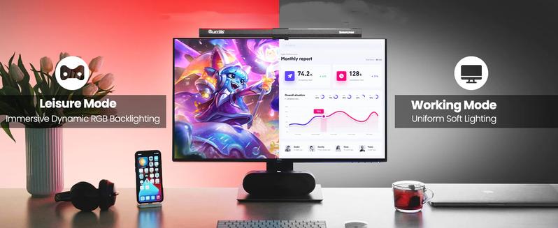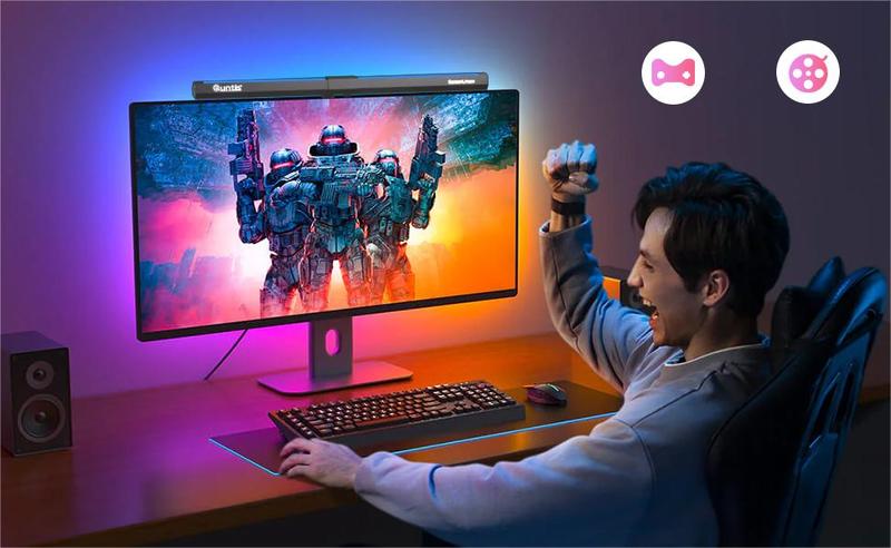- With front and back light, minimize glare and provide balanced lighting. Front light illuminates desk for focus, while backlight offers dynamic gaming lighting