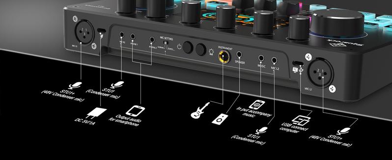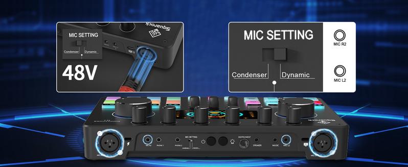 Squarock Podcast Equipment Bundle for 2, Audio Interface DJ Mixer with Studio Podcast Microphones Portable Battery-Powered for Podcast, Live Streaming, Recording, Music Creation COMMANDER M1