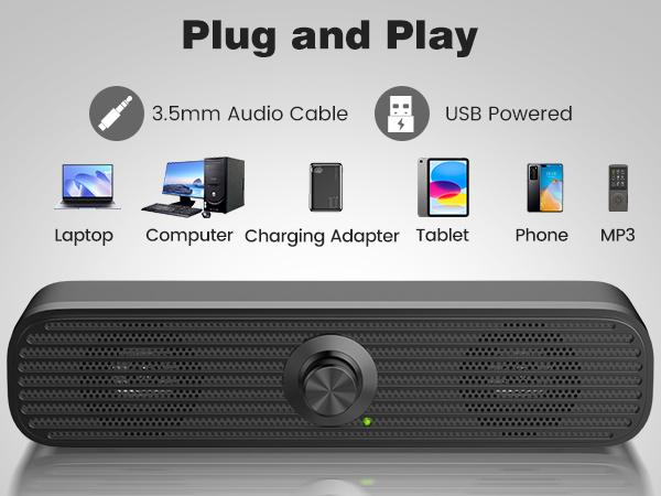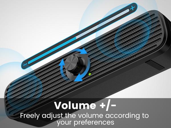 - The uniquely designed rotary button of the computer speaker allows you to easily adjust the volume and enjoy a personalized audio experience without tedious key operations (The volume adjustment range is Mute to Boost).