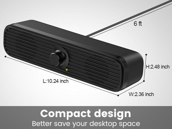 - The computer speaker measuring 10.24 x 2.36 x 2.48in, the compact and modern design saves more space on your TV or computer desktop, 6ft output cord makes it easy to place and store.