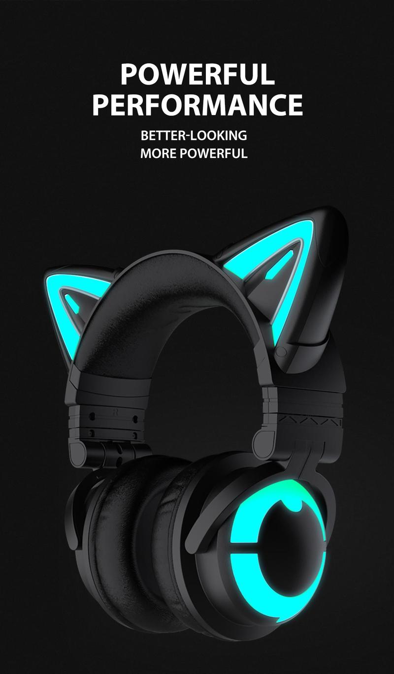 YOWU RGB 3G Cat Ear Headphones :Wireless 5.0 Foldable Gaming Headset with 7.1 Surround Sound, Built-In Mic & Customizable Lighting and Effect via APP, Type-C Charging Audio Cable
